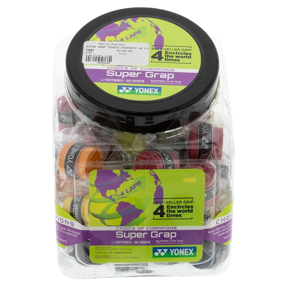 The Yonex Super Grap 60 piece bucket gives you plenty of choices and protection for your racquet handle. Super Grap enhances the playability of your racquet by absorbing shock and perspiration to give you excellent control and feel. It has a tacky/sticky feel so you can hold the racquet handle comfortably.